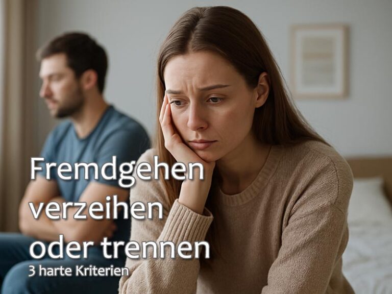 Fremdgehen verzeihen oder trennen – drei harte Kriterien zeigen, ob Vertrauen tragfähig ist, Veränderung sichtbar wird und dein Selbstwert geschützt bleibt.